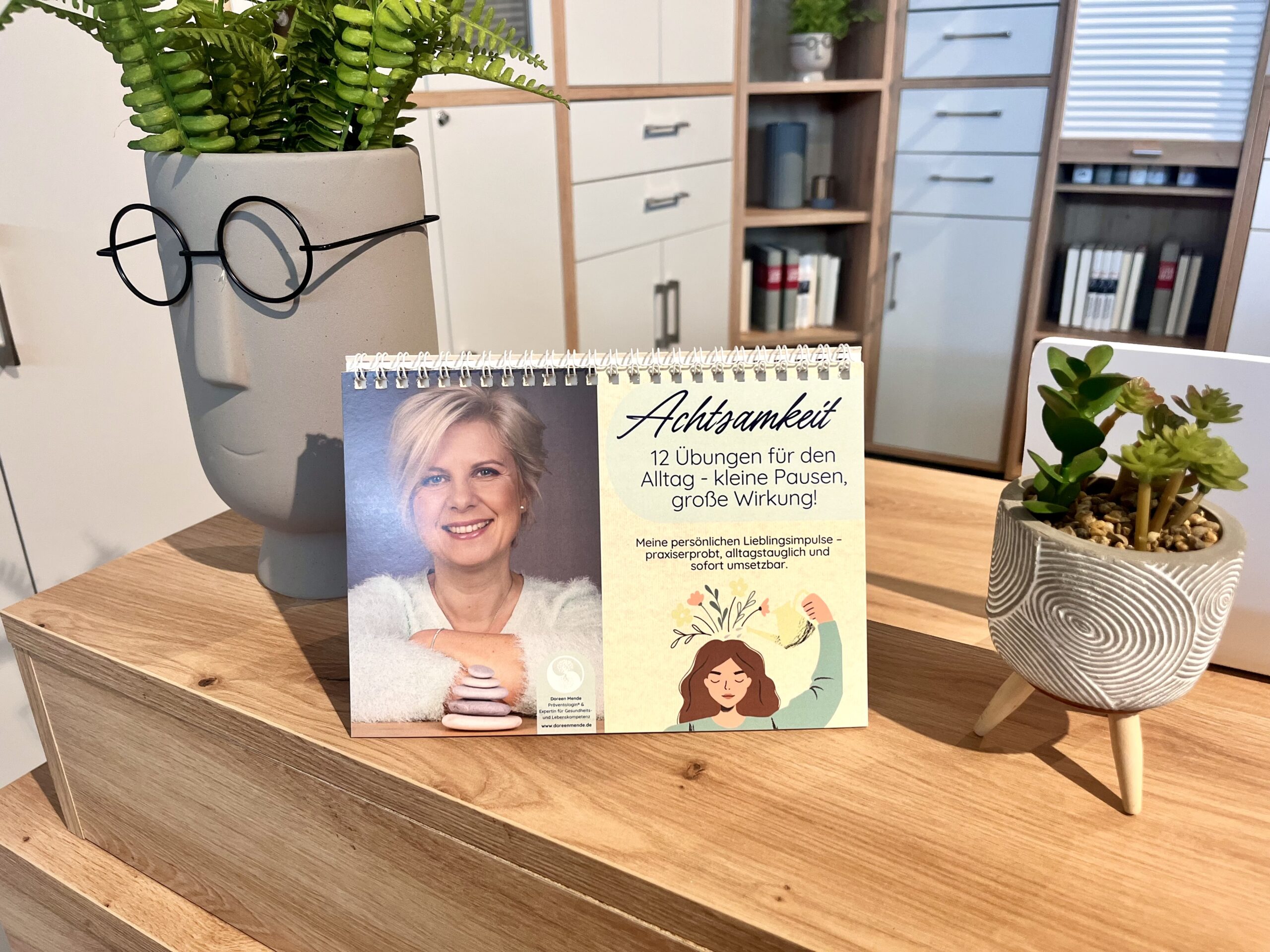 Dieser Tisch-Spiralaufsteller lehrt dich mit Zitaten und inspirierenden Achtsamkeitsübungen, dich selbst bewusster wahrzunehmen und den Moment zu genießen. Er ist Dein achtsamer Begleiter durch den Alltag – mit 12 kraftvollen Impulsen, die Dich Schritt für Schritt zurück zu Dir selbst führen.